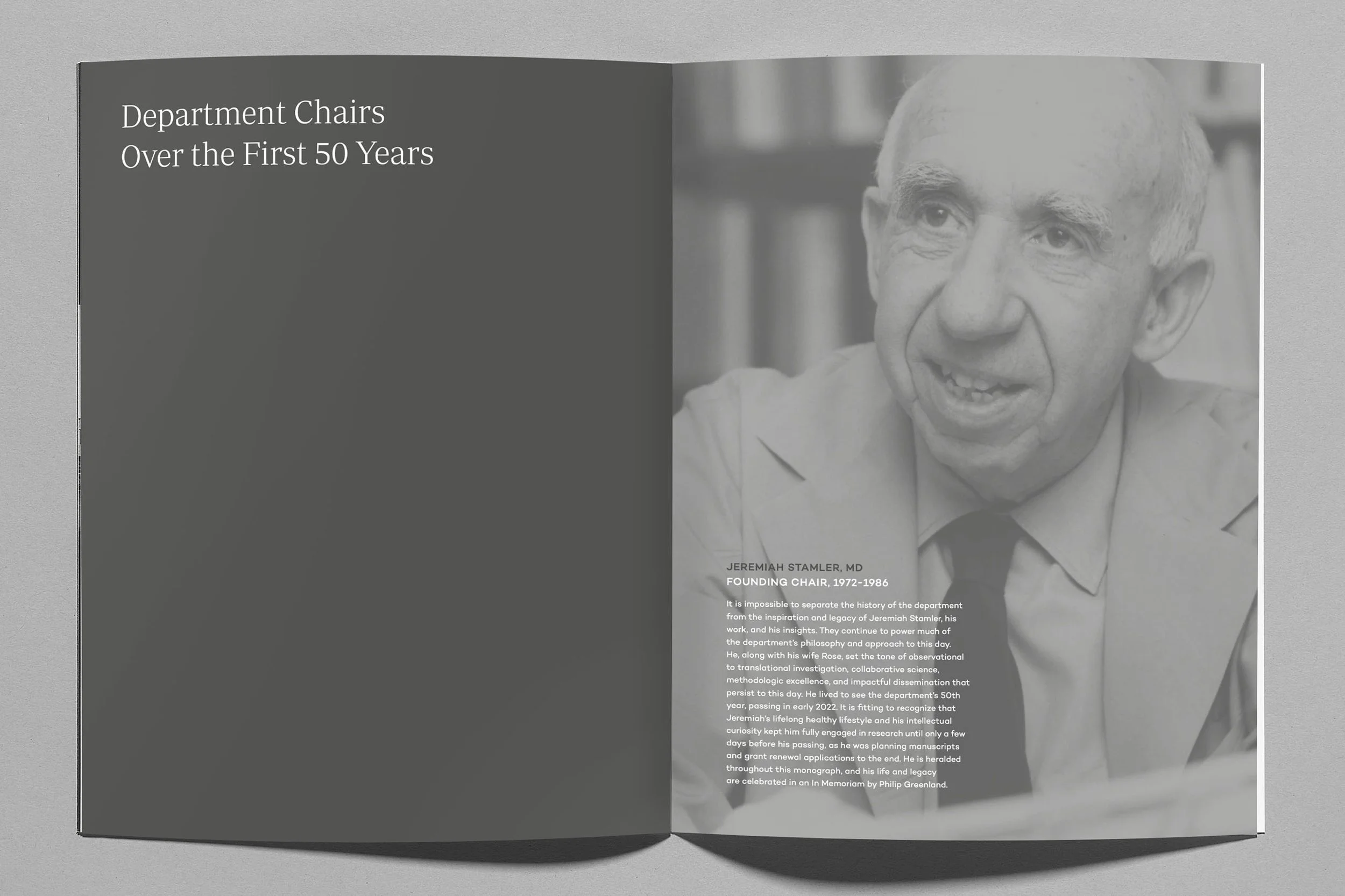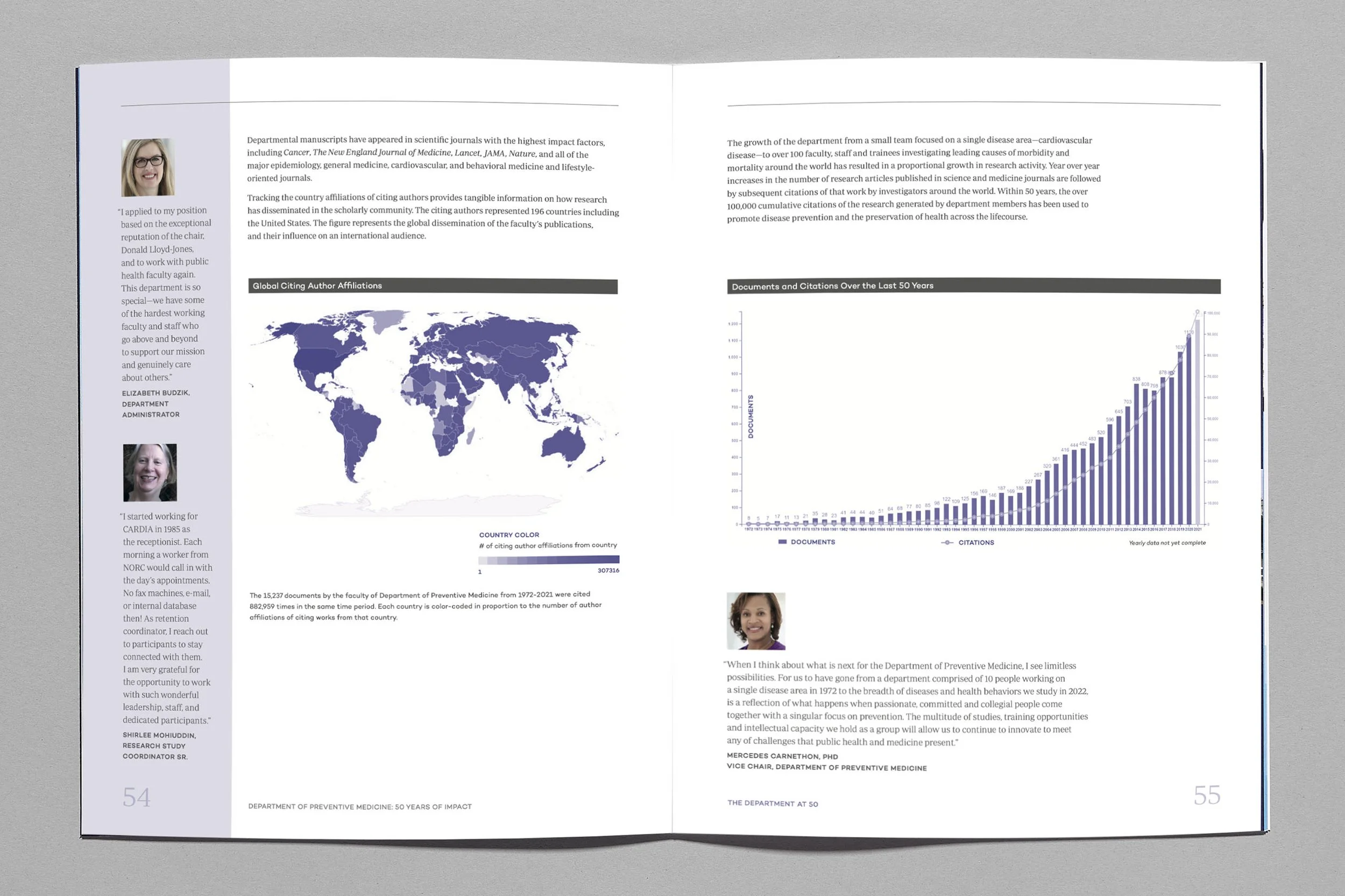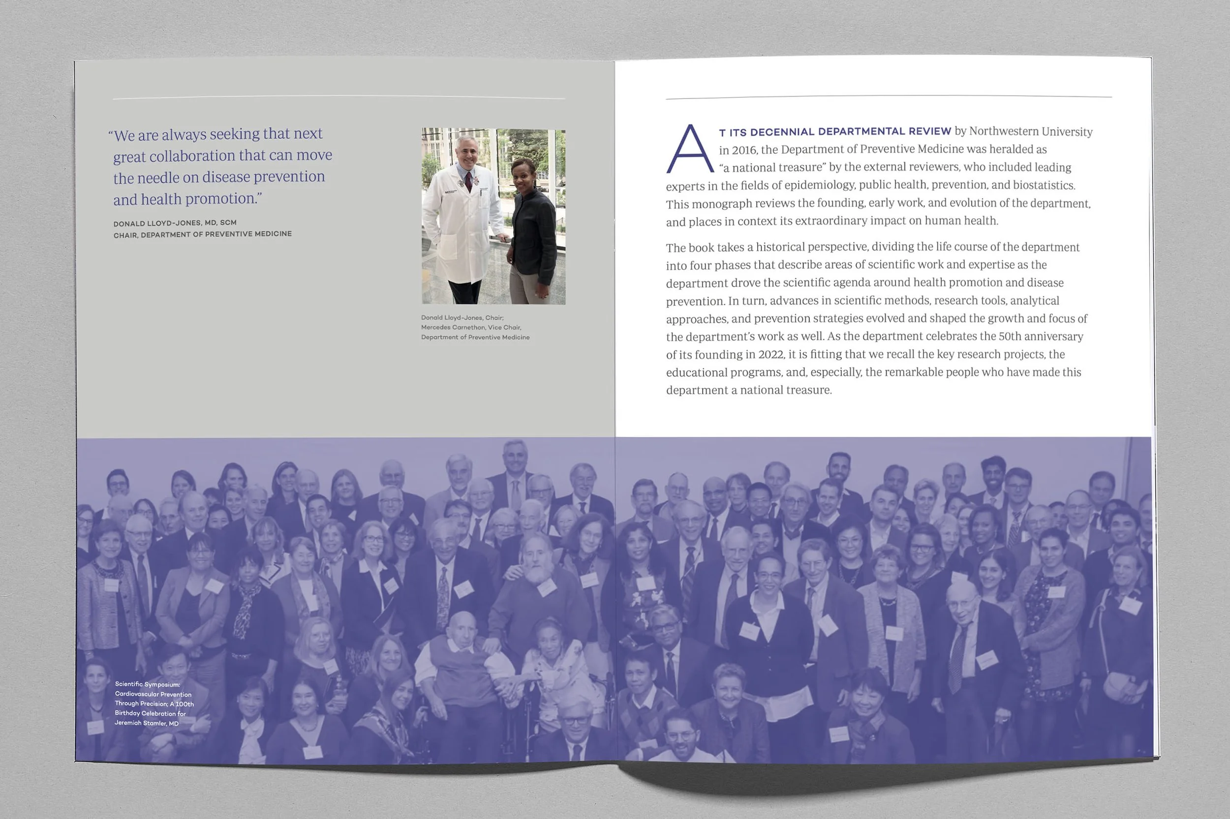 The Department of Preventive Medicine, a multidisciplinary consortium of health scientists focusing on research to improve health and prevent disease, celebrated 50 years and wanted to pay homage to decades of groundbreaking work with a commemorative book and signage for a special event.
